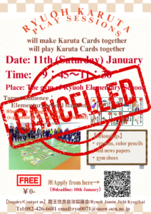The karuta tournament scheduled for Saturday, January 11 at the gymnasium of Ryuoh Elementary School has been […]