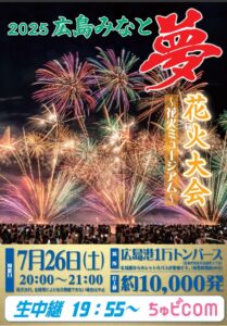 On Saturday, July 26th, there will be a fireworks display at Hiroshima Port from 20:00 to 21:00 . There is no […]
