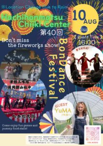 Because of rain on Sunday, August 10, the Hachihonmatsu Summer Festival will be held at a different location.N […]