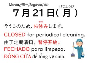 Communication Corer will be closed on July 21(Mon.) due to cleaning. 时间:7月21日(星期一)说明:交流角因进行 清扫(扫除)作业,当日暂停对外开放。 […]