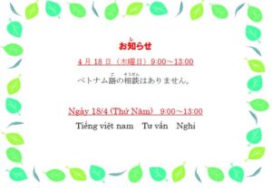 Xin vui lòng lưu ý rằng ngày 18/4 (Thứ Năm) sẽ không có nhân viên tư vấn tiếng Việt tại quầy Communication Cor […]