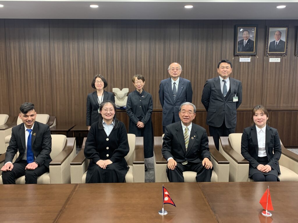 令和6年3月6日に東広島市役所で私費留学生奨学金 報告会を行いました。今回は4名の奨学生の内、3名が報告会に参加し、会長である髙垣市長に今年1年のことを報告しました。皆さんが学校での勉強のこと、就職活動のこと、地域の人々との交流等について、写真等も交えて報告してくれたので、この1年がとても充実した年であったことを知ることができました。