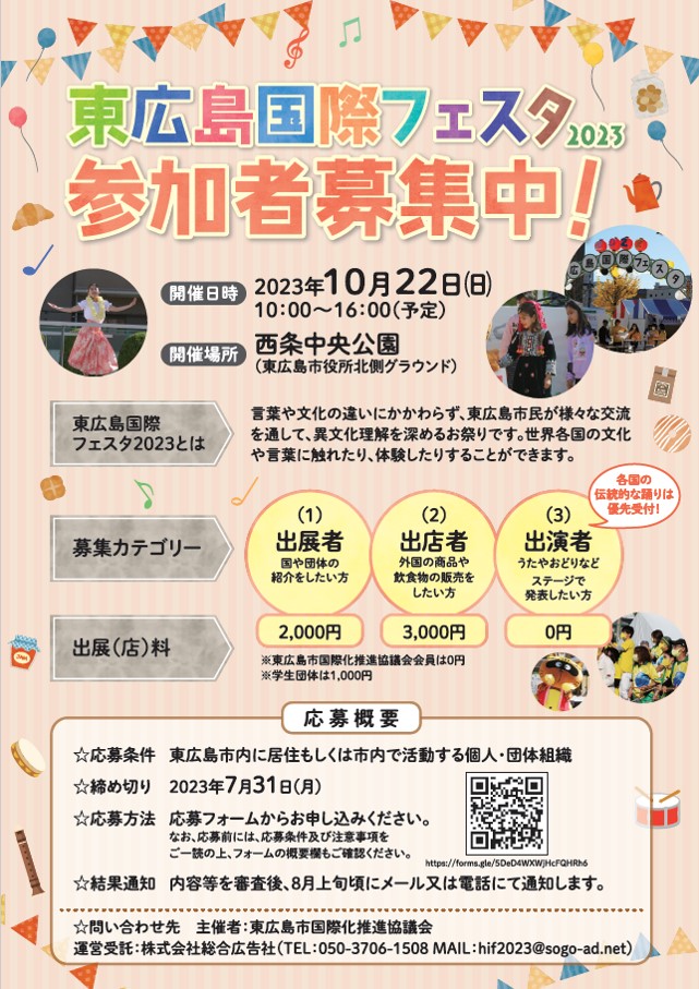 運営受託:株式会社総合広告社(電話番号:082-555-0520 MAIL:hif2022@sogo-ad.net)