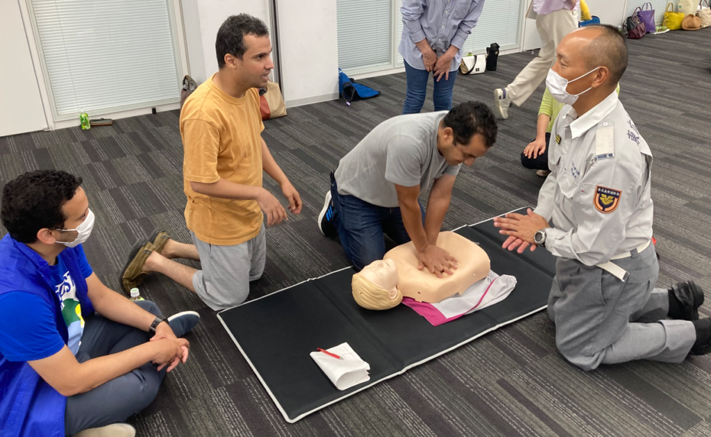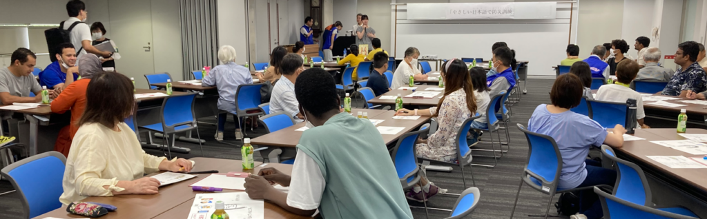 8月27日(日)、消防署で「やさしい日本語で防災」が開催されました。日本人市民は、「やさしい日本語」を学び、外国人市民は「防災」を学び、最後は、AEDの使い方を体験学習しました。子供たちは、別途、外でちびっ子消防士に変身し、消防士さんと一緒に本物の消防車で放水(訓練?)を体験をし、大喜びでした(そりゃそうだ^^)!日本人市民48名、外国人市民(こども込)32名の合計ぴったり80名で、それぞれ楽しく防災を学び、体験できたと思います。防災の学びもさることながら、お互い知合うことで、これからの日本生活を楽しく続けて頂けたらと思います。