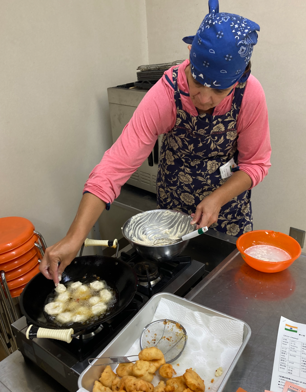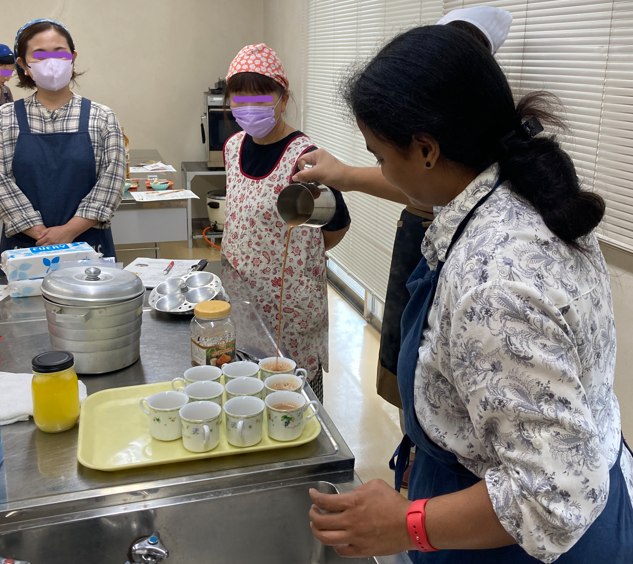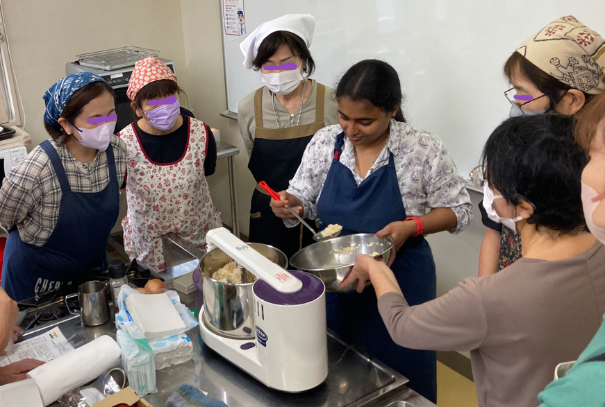 9月28日(木)10:00~、第一回インド家庭料理教室@朝食編がありました。参加者8名の内、1名は外国人市民の方でした。ウェルカムドリンクでインド流の煮出したミルクティ(Chai)を飲んでから、料理教室スタート!日本のインド料理レストランでは知ることが出来ない、インドの一般家庭(主に南)で食べられる朝食を楽しみました。講座の後、皆でわいわいお喋りをしながら片付けをし、片付け後は、受講生のブラジル人市民の方、インド人の先生も皆一緒にインスタやラインの登録をし合いました。「では、また~(次回は11月)」で終了。第二回@昼食編11月9日(木)も楽しみです。