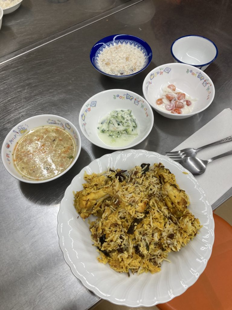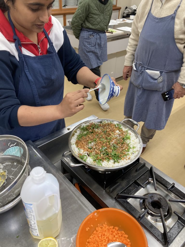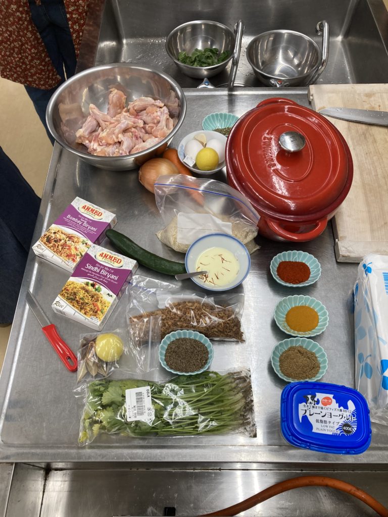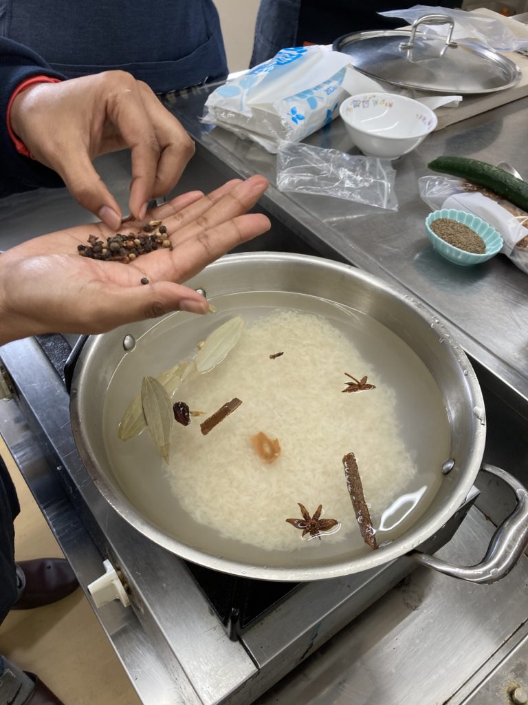 12月14日(木)10:00~、第3回インド家庭料理教室@夕食編でした。鶏肉をスパイスとヨーグルトで漬け込むところから始まり、お米とスパイスを茹でて、鶏肉と一緒に炊き込む前に8割方火を通す~ところは、日本食文化では見かけない手法でしょうか。