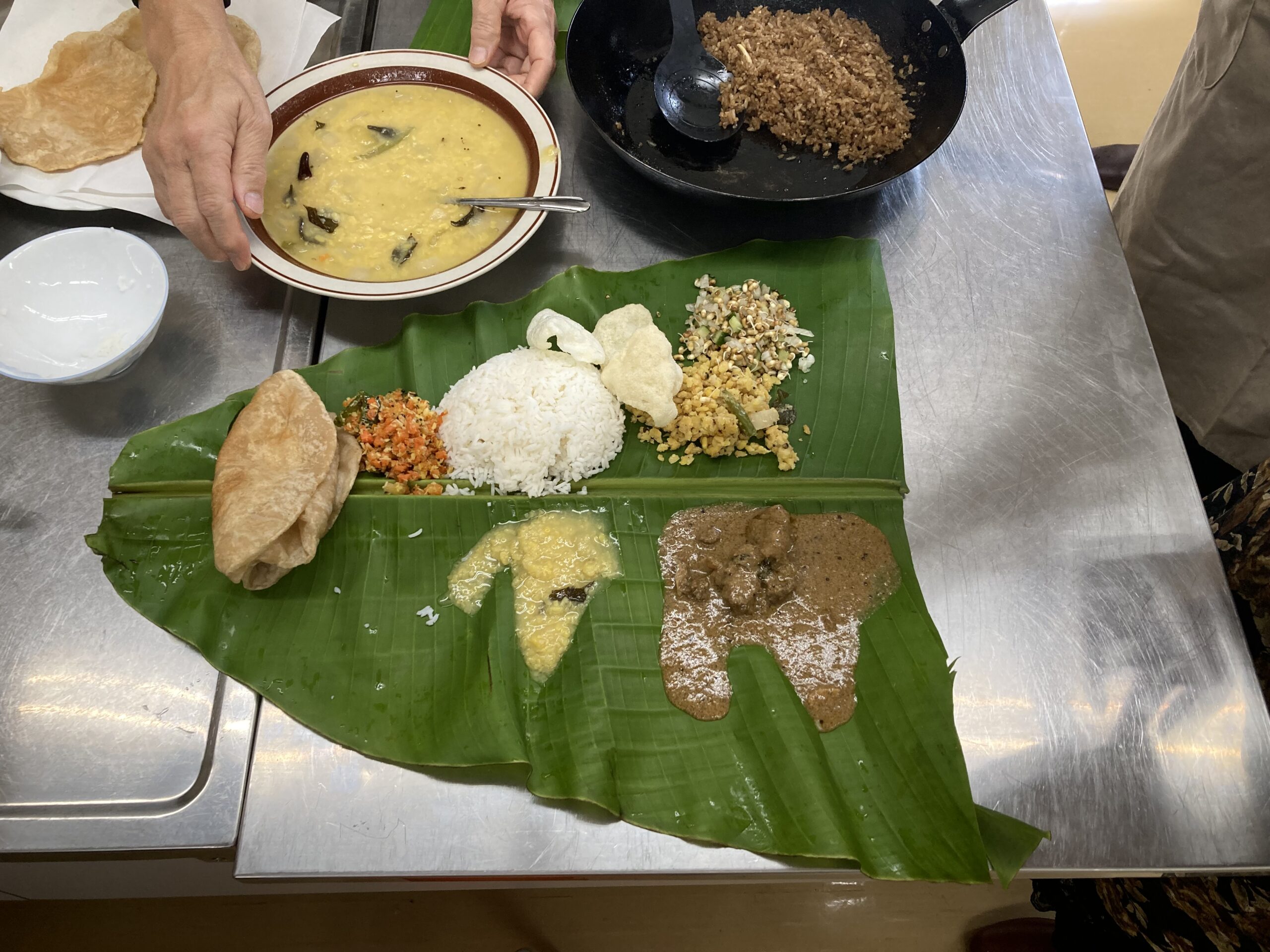 11月9日(木)10:00~、第2回インド家庭料理教室@昼食編でした。インドならではのスタイル、Banana Leafのプレートで、手で食べる~を、参加者の皆さんも個々にTRYされました。食べ難い方は、勿論、スプーンとフォークで。非日常な食べ物やスタイルを、皆さんに楽しんで頂けたかな?と思います。ラストの第3回@夕食編は、12月14日(木)です。