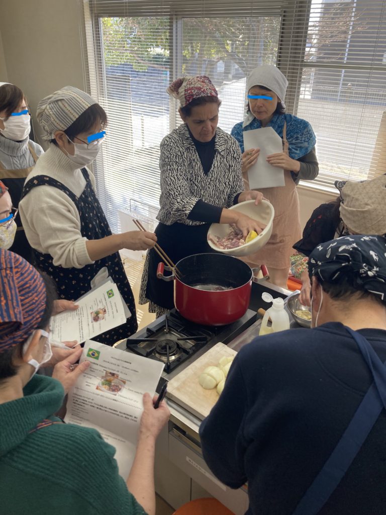 2月8日(木)10:00~、ブラジル家庭料理教室でした。ブラジルの国民食★フェイジョアーダ他、欠かせない副菜数品を作りました。ポルトガル語での挨拶から始まり、フェイジョアーダを煮込み中は、その歴史(の真実と建前?)の話も聞きました。打合せの時には聞けなかった内容もあり、私もまた新たな「なるほど!」のことが聞けました。だから異文化は興味深い!最後は、音楽が大好きな先生の弾語りを聞きながら実食。これはなかなかない乙な演出。エンターテイナーなリセリア先生でした。ご参加頂いた皆様、有難うございました。