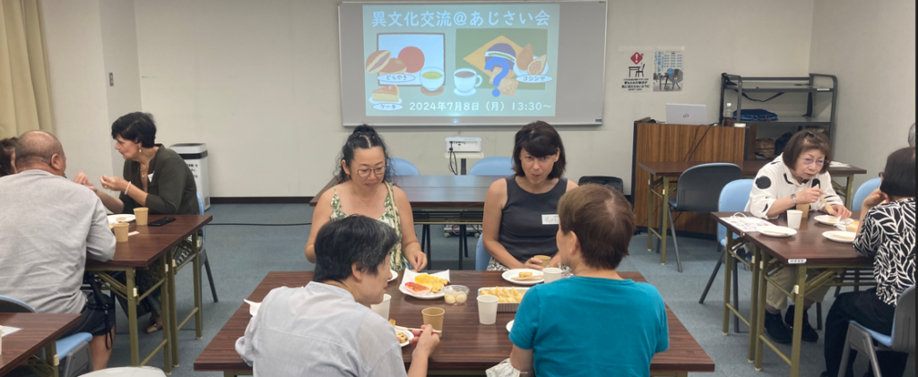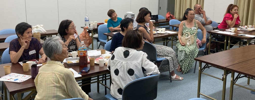 7月8日(月)13:30~、あじさい会の役員7名と外国人市民7名が、交流会をしました。「異文化交流がしたい」という相談を受け、初回は気軽に楽しみ合えるよう茶話会風の交流会を企画しました。参加者の外国人市民は在日10年越え~30年の永住者(1名は日本人配偶者)。あじさい会役員との年代が近かったのが良かったのか?外国人市民代表のLiceliaさんがエンターテイナーだったこともあり、賑やかな茶話会となりました。勿論、何かあればまたお手伝いさせて頂きますが、次回は是非自走で!よろしくお願いいたします。