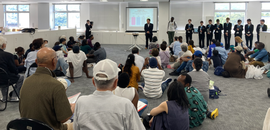 8月2日(金)、「留学生と一緒に社会見学をしませんか?」の企画に手伝い同行させて頂きました。広島大学のアフリカ留学生会とその他の留学生と一緒に食協工場見学へ。夏休み中のお子さんも一緒に参加のご家族もいらっしゃいました。工場見学の後は、広島大学に移動して昼食。その後、グループ毎で自国の好きな料理の絵を描きながらの交流会でした。日本にはない素材を使った料理や、同じ魚の種類でも味が違うことなど、興味深い話を聞くことが出来ました。小学生の子供くんたちは、何を感じたか?私はそちらの方に興味津々でした。
