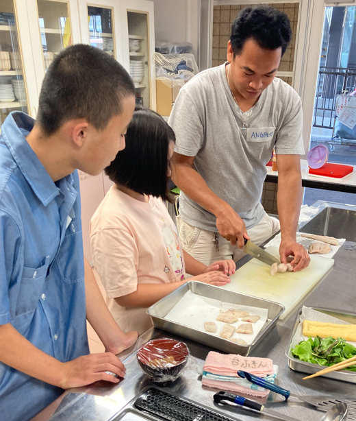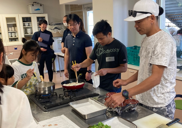 8月18日(日)午前10時~、第2回ともだちプロジェクト~やさしいにほんごで交流をしよう!~ が、開催されました。今回の参加者は、17名(日5名、外12名)。1時間目の「やさしいにほんご講座」では、『私の国の好きな食べ物』の絵を描いてグループ毎で話をしました。2時間目は調理実習『さばの竜田揚げねぎだれかけ』。今回、ハラール醤油が用意され、インドネシアの参加者も美味しく楽しく和食を楽しんで頂けました。次回はラスト、9月8日(日)。「やさしいにほんご」を楽しく知る事が出来る講座を目指しています。皆さんのご参加をお待ちしております。