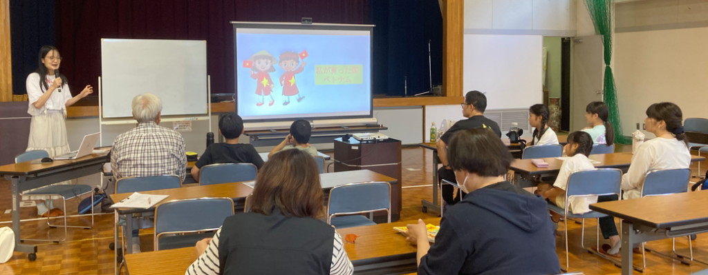 10月12日(土)10:00~13:00、入野地域センターで、「河内で世界とつながる~アジアの食文化について学ぶ~」が、開催されました。2家族、8名(大人3人、こども5人)にご参加頂きました。ベトナム人講師からベトナムについて話を聞いたり、「東広島に所縁のあるベトナム象」ということで、大きな折り紙で象も作りました。その後、ベトナム料理のBanh Xeo(ベトナム風お好み焼き)を作り、皆で一緒に食べました。ご参加頂いた皆さんにベトナムについて知って頂き、ベトナムやベトナム以外の国々にも関心を持って頂けたらと思います。