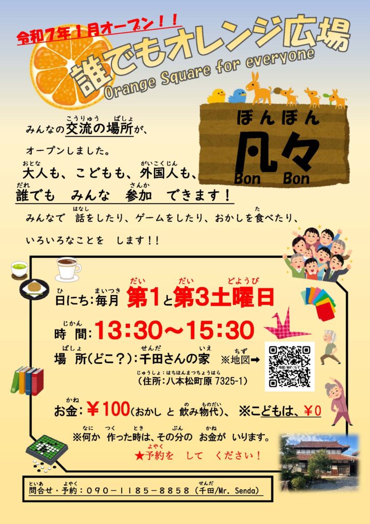 毎月第1と第3土曜、13:30~15:30、八本松原の千田さんのご自宅で、みんなが集える交流の場「凡々」がオープンします。年齢や国籍に関係なく、誰もが集える場としたい!ということで、先ずはチラシを「やさしいにほんご」と英語で編集させて頂きました。原在住の外国人は、留学生や技能実習生が多いので、これから追って、チラシをベトナム語、中国語にも編集させて頂こうと思います。また追記します!少々お待ちください。