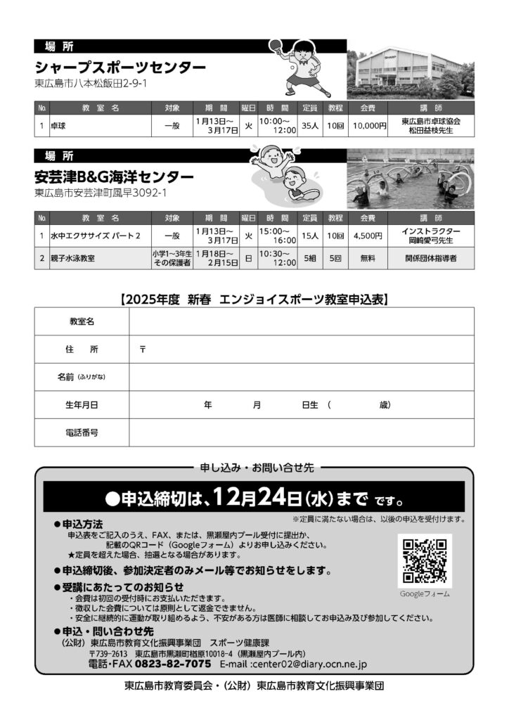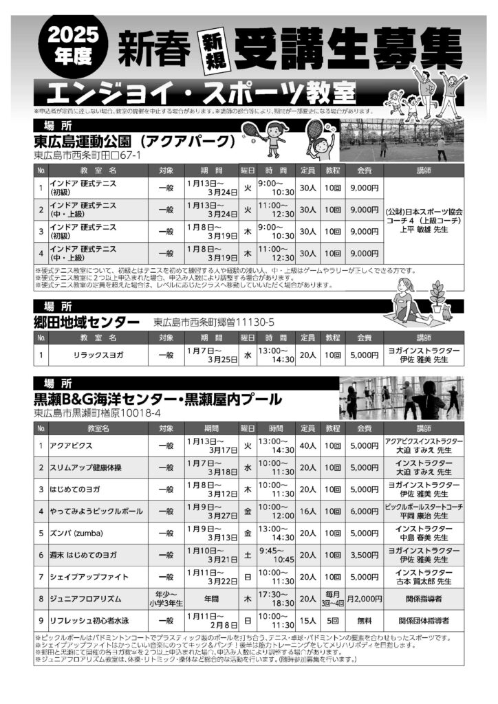 1月から3月で開催する【エンジョイスポーツ教室】の受講生を募集します。